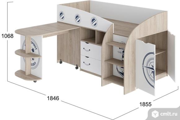 Продам детскую двухъярусную кровать. Внизу 2 вместительных выдвижных ящика для постельного белья или чего-то другого, справой стороны ящик с двумя полками. В комплекте идёт матрас (если нужен). Габариты ВхШхД (106х109х184)