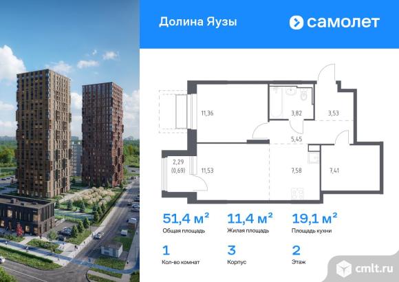 Строим кварталы для жизни с заботой о будущем. Предлагается 1-комнатная квартира комфорт-класса 51,37 кв.м в корпусе 3 на 2 этаже, в ЖК «Долина Яузы»