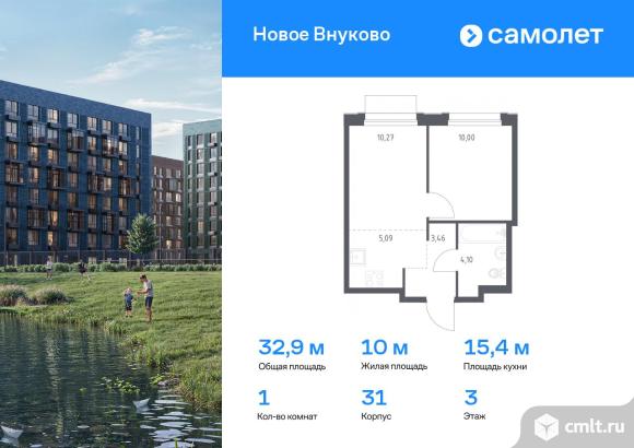 Предлагается 1-комнатная квартира комфорт-класса 32,92 кв.м в корпусе 31 на 3 этаже, в ЖК «Новое Внуково»