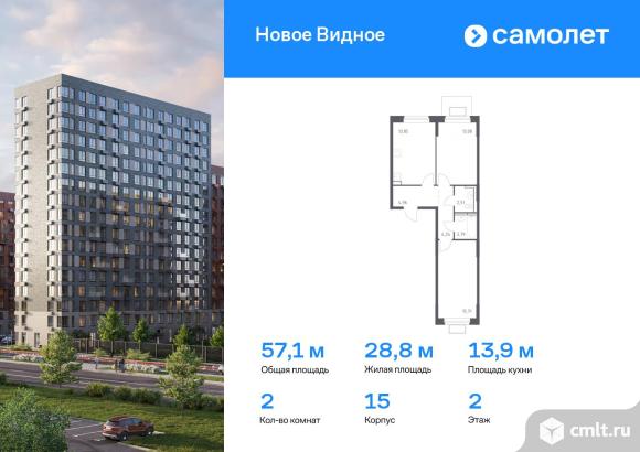 Предлагается 2-комнатная квартира комфорт-класса 57,14 кв.м в корпусе 15 на 2 этаже, в ЖК «Новое Видное»