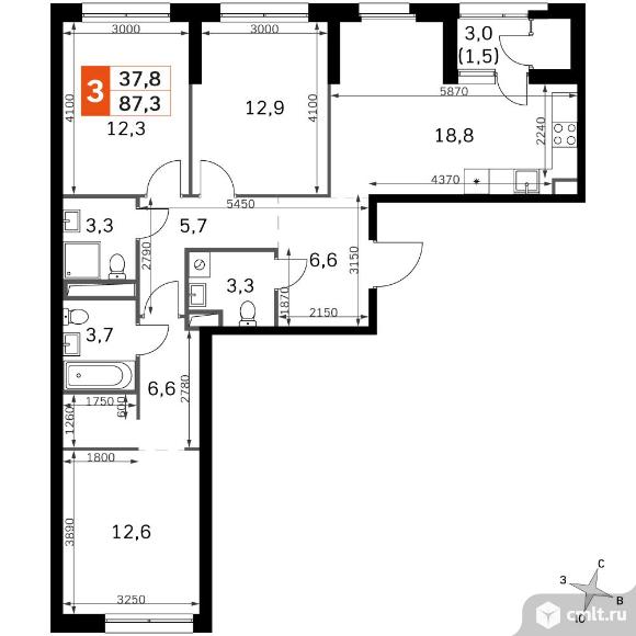 Перейти к актуальным объявлениям рубрики Квартиры. 3-комнатная квартира 87,3 кв.м - ЖК "Sky Garden"