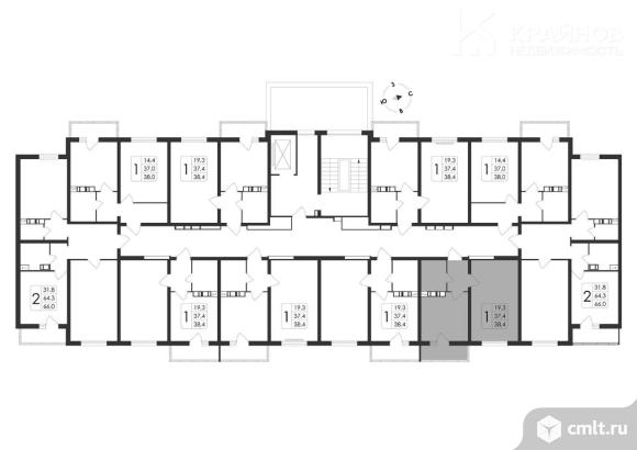 1-комнатная квартира 38,4 кв.м