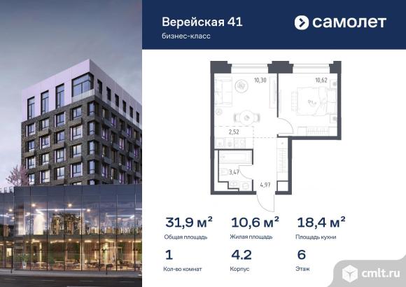 Строим кварталы для жизни с заботой о будущем. Предлагается 1-комнатная квартира бизнес-класса 31,88 кв.м в корпусе 4.2 на 6 этаже, в «Верейская 41»