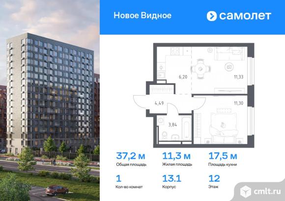 Предлагается 1-комнатная квартира комфорт-класса 37,16 кв.м в корпусе 13.1 на 12 этаже, в ЖК «Новое Видное»