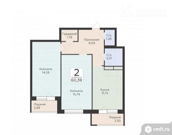 2-комнатная квартира 60,39 кв.м