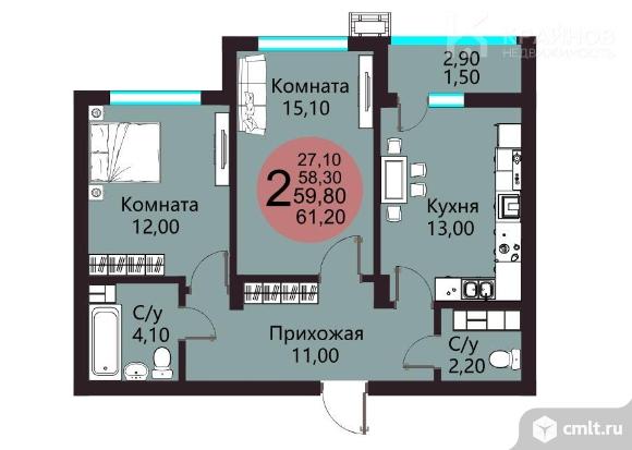 2-комнатная квартира 59,8 кв.м