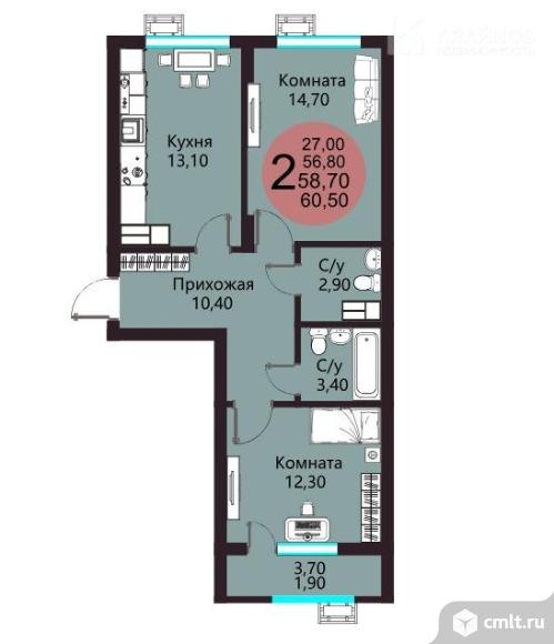 2-комнатная квартира 58,7 кв.м