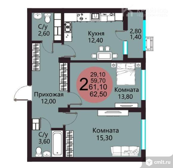 2-комнатная квартира 61,1 кв.м