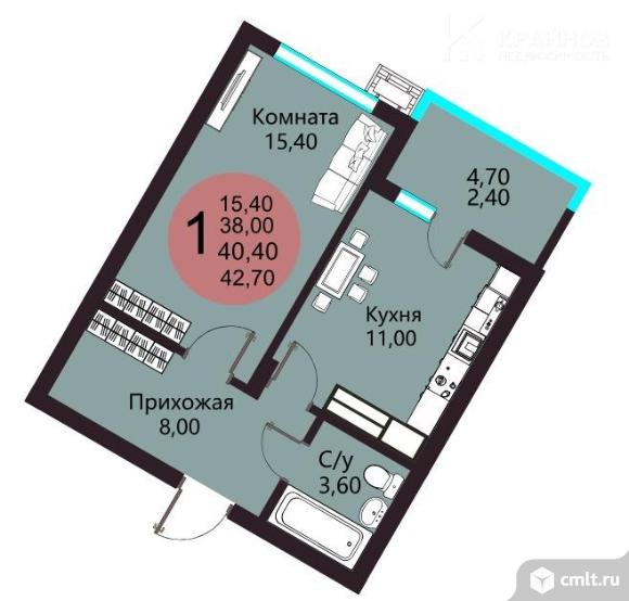 1-комнатная квартира 40,4 кв.м