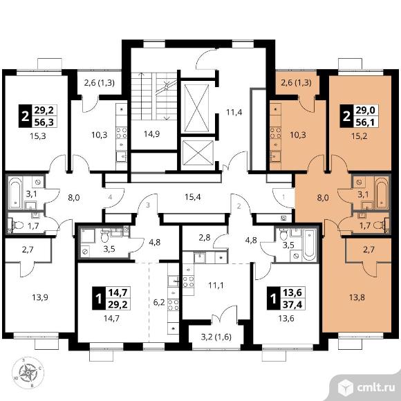 Перейти к актуальным объявлениям рубрики Квартиры. 2-комнатная квартира 56,1 кв.м - ЖК "1-й Южный"