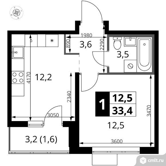 Перейти к актуальным объявлениям рубрики Квартиры. 1-комнатная квартира 33,4 кв.м - ЖК "1-й Южный"