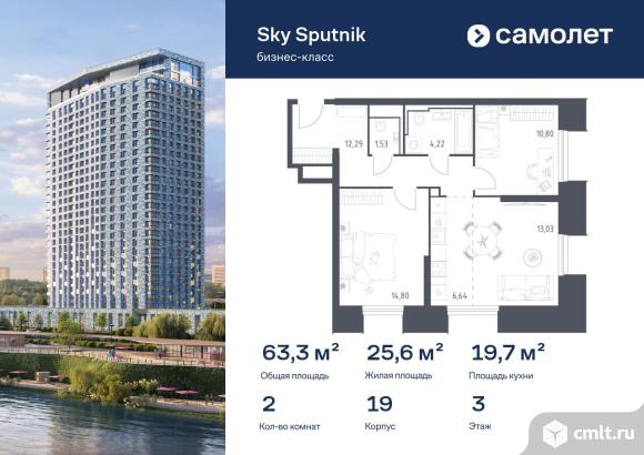 Строим кварталы для жизни с заботой о будущем. Предлагаются 2-комнатные апартаменты бизнес-класса 63,31 кв.м в корпусе 19 на 3 этаже, в Sky Sputnik