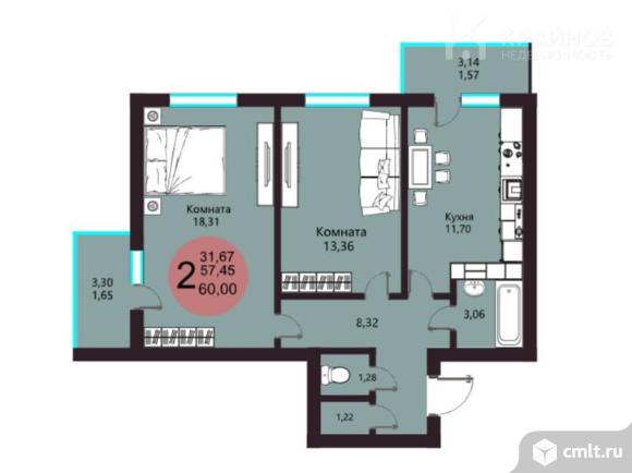 2-комнатная квартира 56,9 кв.м