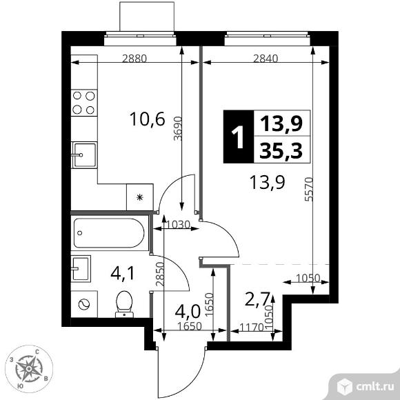 1-комнатная квартира 35,3 кв.м - ЖК "1-й Измайловский"