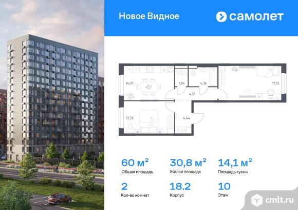 Предлагается 2-комнатная квартира комфорт-класса 60,03 кв.м в корпусе 18.2 на 10 этаже, в ЖК «Новое Видное»