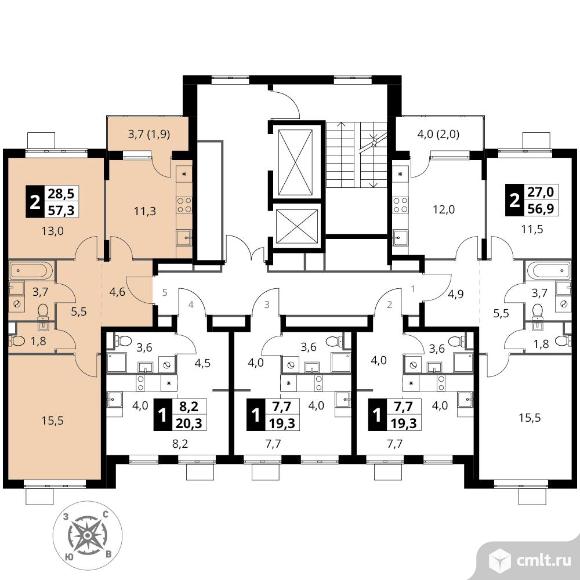 Перейти к актуальным объявлениям рубрики Квартиры. 2-комнатная квартира 57,3 кв.м - ЖК "1-й Шереметьевский"