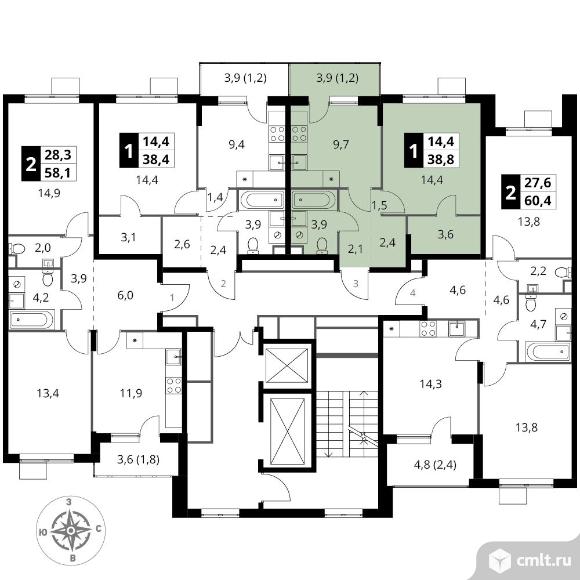 Перейти к актуальным объявлениям рубрики Квартиры. 1-комнатная квартира 38,8 кв.м - ЖК "1-й Шереметьевский"