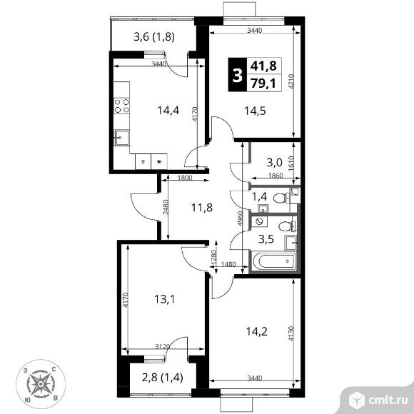 Перейти к актуальным объявлениям рубрики Квартиры. 3-комнатная квартира 79,1 кв.м - ЖК "1-й Шереметьевский"