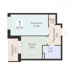 1-комнатная квартира 39,11 кв.м