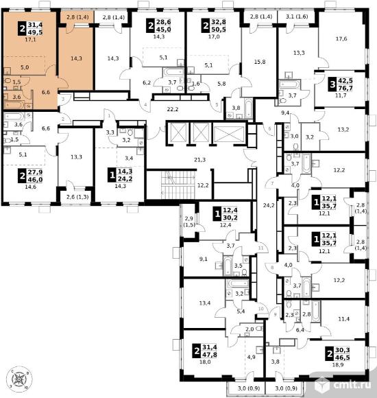 Перейти к актуальным объявлениям рубрики Квартиры. 2-комнатная квартира 49,5 кв.м - ЖК "1-й Донской"
