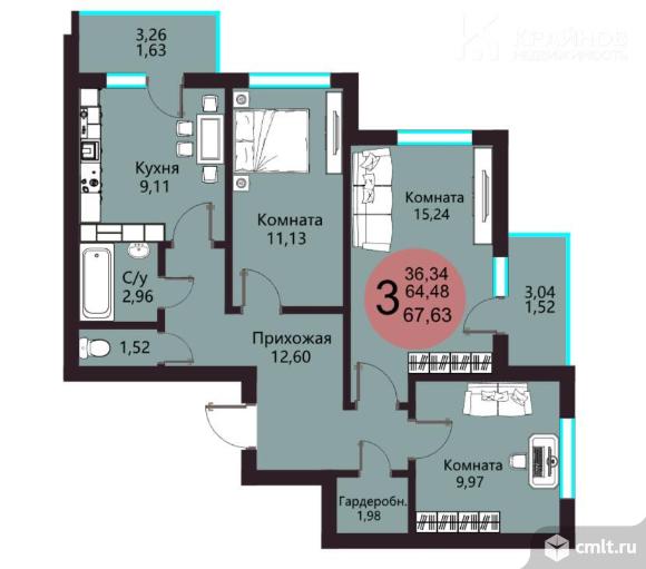 3-комнатная квартира 64 кв.м