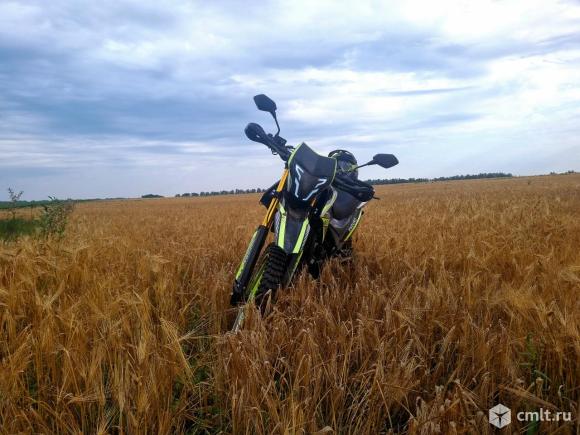Эндуро в отличном состоянии. Есть косяки по пластику(попадал в аварию). Переднее колесо серебристое, заднее чёрное. 175 мотор,25 л.с