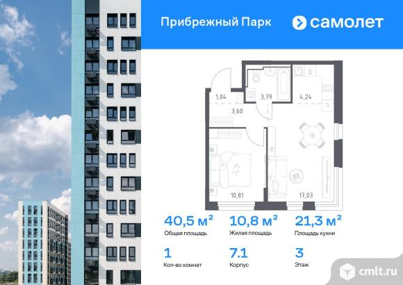 Предлагается 1-комнатная квартира комфорт-класса 40,51 кв.м в корпусе 7.1 на 3 этаже, в ЖК «Прибрежный Парк»