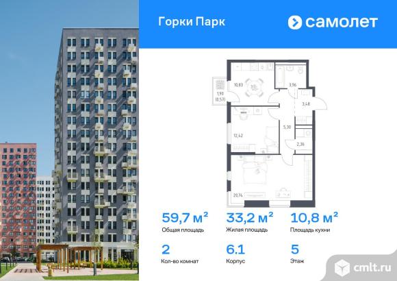 Строим кварталы для жизни с заботой о будущем. Предлагается 2-комнатная квартира комфорт-класса 59,66 кв.м в корпусе 6.1 на 5 этаже, в ЖК «Горки Парк»