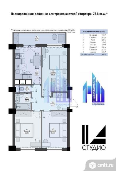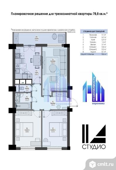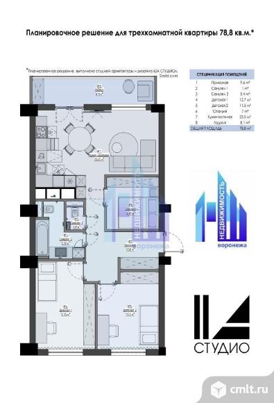 Продается новая квартира в монолитном доме в предчистовой отделке площадью 71.4 кв.м. + 7.4 кв.м. лоджия (застеклена). Функциональная планировка на две стороны, большая кухня 12.7 м с выходом на лоджию. Комнаты 17.1 м, 14 м, 13,4 м. Отдельная зона прихожей и коридор 9 м.