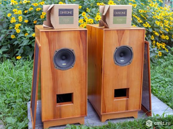 Колонки построенные на легендарных динамиках Diatone P-610A (1970г) строго по чертежам рекомендованным фирмой производителем этих динамиков. динамики с длительного хранения, были в коробках, но полиуретановые подвесы, разумеется, рассыпались. поэтому мастером были установлены подвесы из козлиной кожи, степень их податливости была подогнана под резонансную частоту заявленную фирмой производителем.