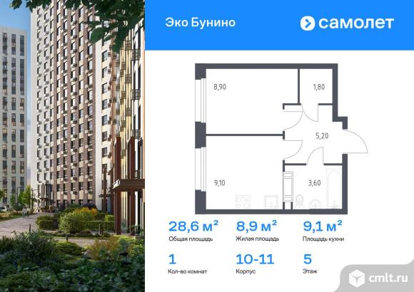 Предлагается 1-комнатная квартира комфорт-класса 28,6 кв.м в корпусе 10-11 на 5 этаже, в ЖК «Эко Бунино»