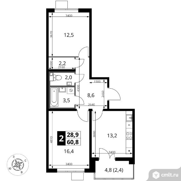Перейти к актуальным объявлениям рубрики Квартиры. 2-комнатная квартира 60,8 кв.м - ЖК "1-й Южный"