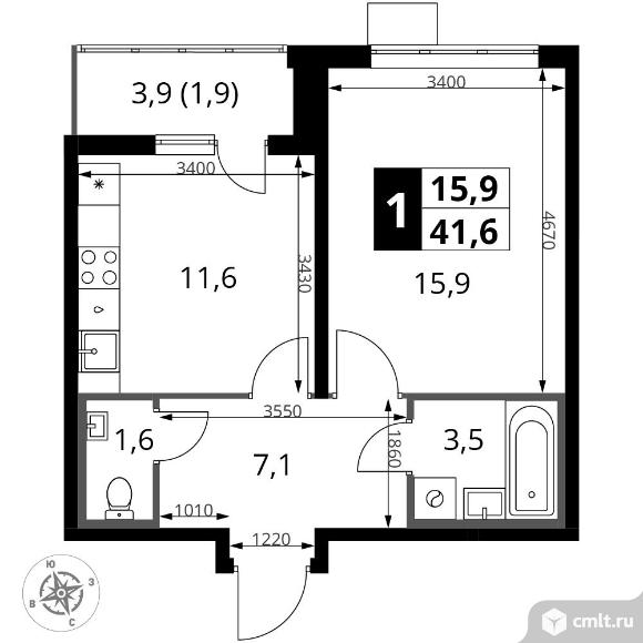 Перейти к актуальным объявлениям рубрики Квартиры. 1-комнатная квартира 41,6 кв.м - ЖК "1-й Южный"