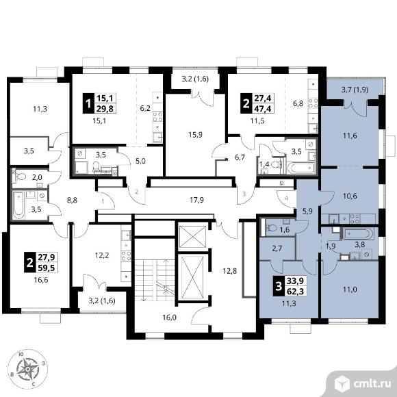 Перейти к актуальным объявлениям рубрики Квартиры. 3-комнатная квартира 62,3 кв.м - ЖК "1-й Южный"