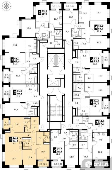 4-комнатная квартира 91,4 кв.м - ЖК "1-й Саларьевский"