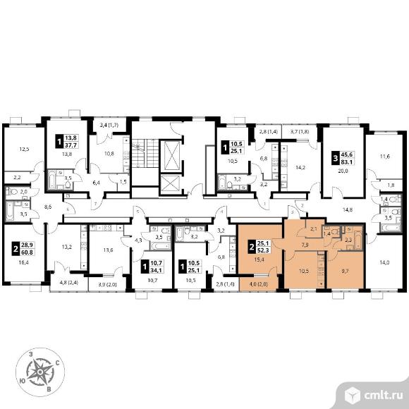 Перейти к актуальным объявлениям рубрики Квартиры. 2-комнатная квартира 52,3 кв.м - ЖК "1-й Южный"