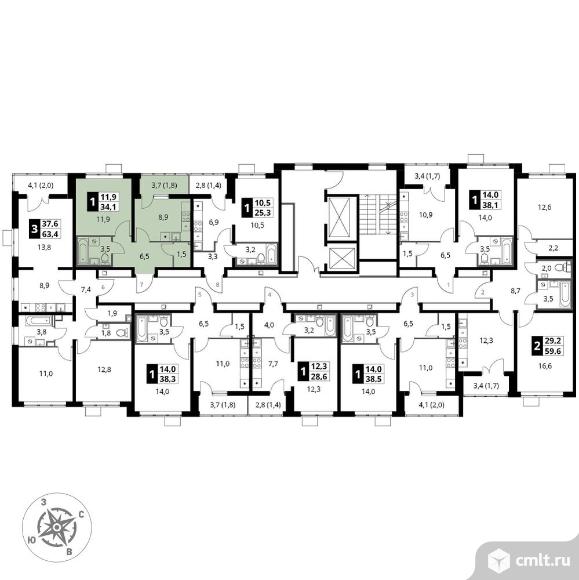 Перейти к актуальным объявлениям рубрики Квартиры. 1-комнатная квартира 34,1 кв.м - ЖК "1-й Южный"