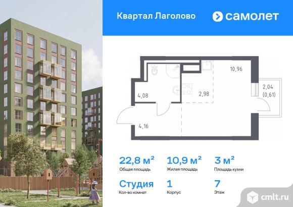 Строим кварталы для жизни с заботой о будущем. Предлагается квартира студия комфорт-класса 22,79 кв.м в корпусе 1 на 7 этаже, в ЖК «Квартал Лаголово»