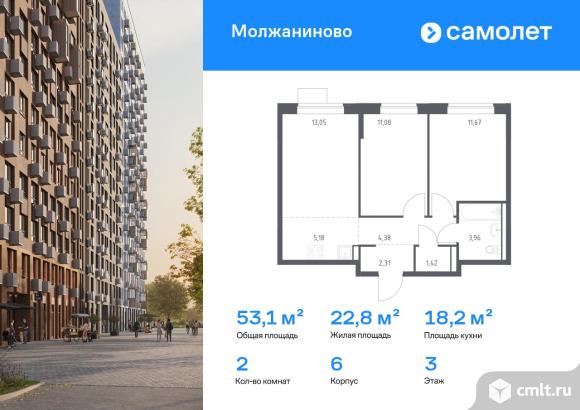 Строим кварталы для жизни с заботой о будущем. Предлагается 2-комнатная квартира комфорт-класса 53,05 кв.м в корпусе 6 на 3 этаже, в ЖК «Молжаниново»