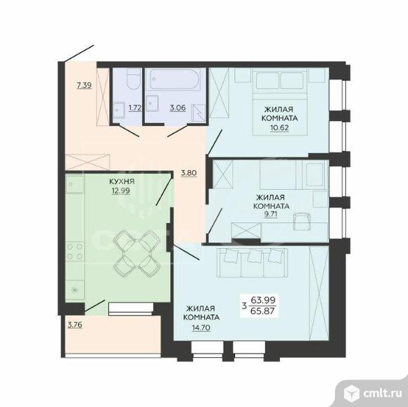 3-комнатная квартира 65,87 кв.м