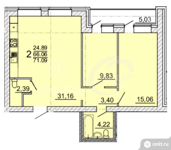 2-комнатная квартира 71,09 кв.м