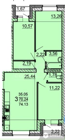 3-комнатная квартира 74 кв.м