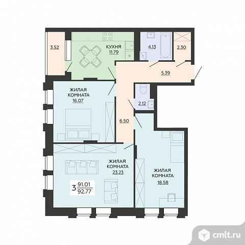 3-комнатная квартира 92,77 кв.м