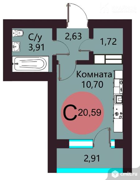 1-комнатная квартира 20,59 кв.м