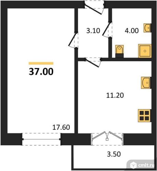 1-комнатная квартира 37 кв.м