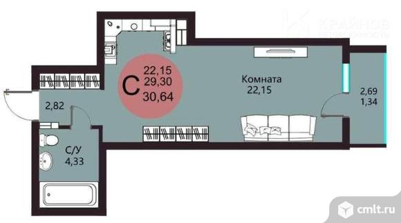 1-комнатная квартира 30,64 кв.м