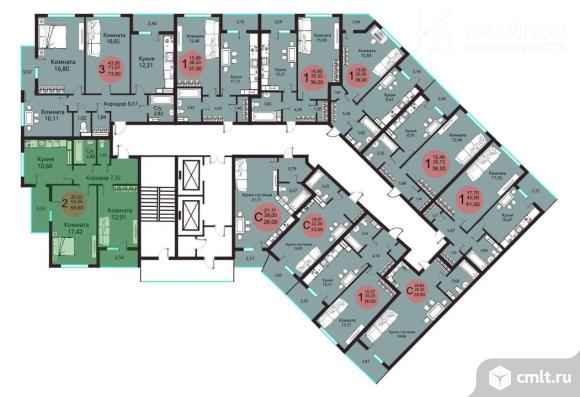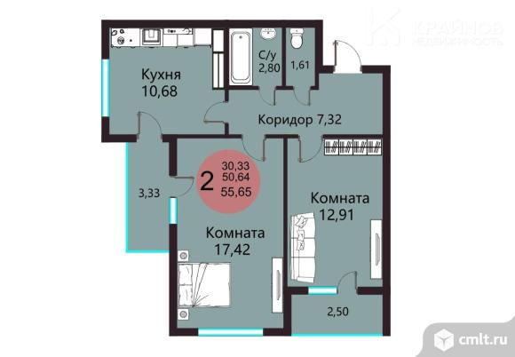 2-комнатная квартира 55,65 кв.м