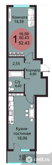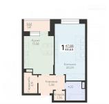 1-комнатная квартира 52,43 кв.м