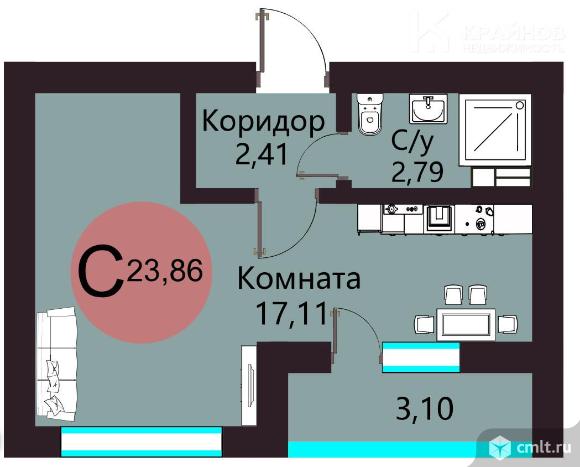 1-комнатная квартира 23,86 кв.м