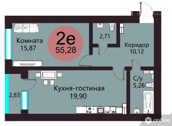 2-комнатная квартира 55,28 кв.м